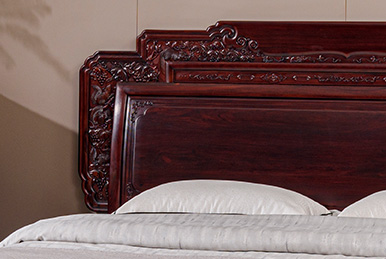 一個舒適、健康的臥室,更能為睡眠帶來安寧、舒心。紅木大床溫潤的質感,搭配柔軟的床品,編織出美好睡眠體驗。
